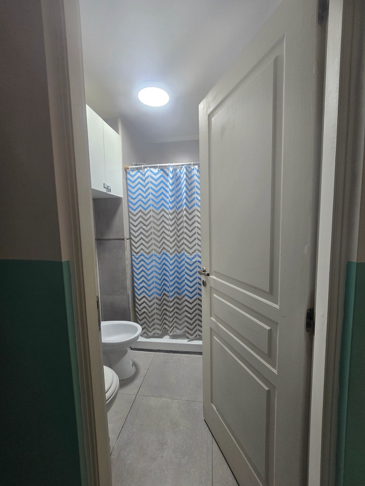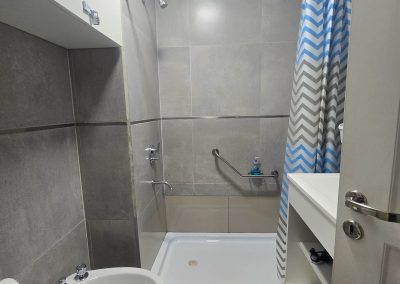 En el dormitorio puede armarse una cama King size, o dos camas de una plaza y media, placard con cajones, perchas, smart tv de 32 pulgadas, cortinas blackout para total oscurecimiento.